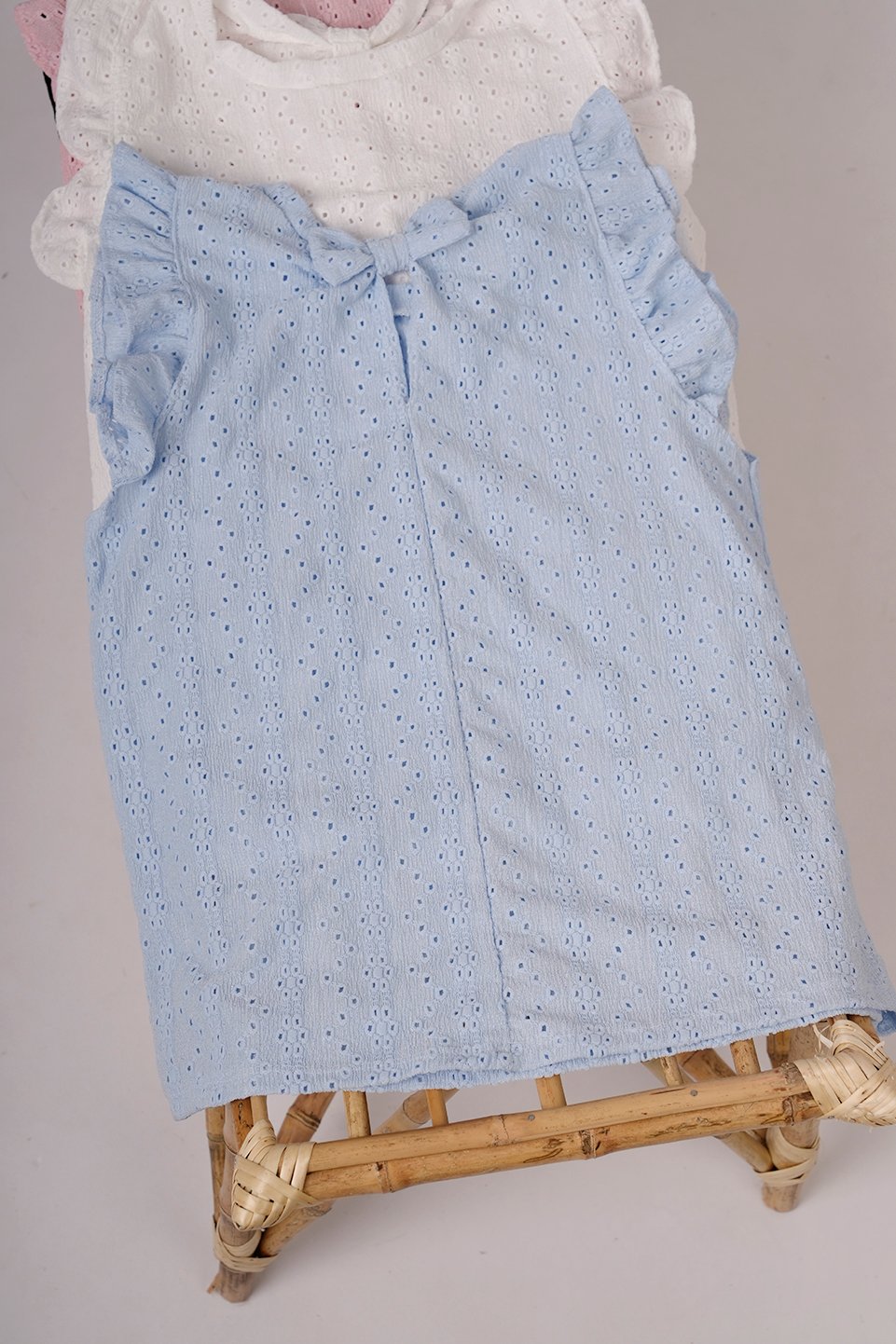 MUSCULOSA GOTA CON MOÑO ATRAS BRODERIE CREP circulo y zigzag