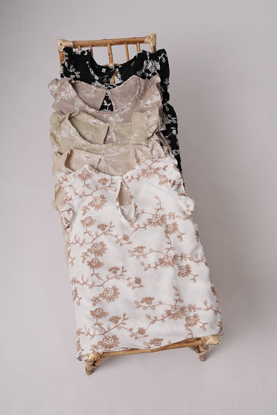MUSCULOSA GOTA LINO BRODERIE enredado flores con hojitas