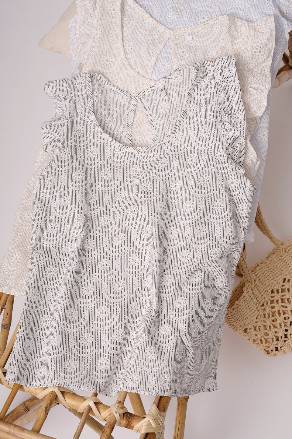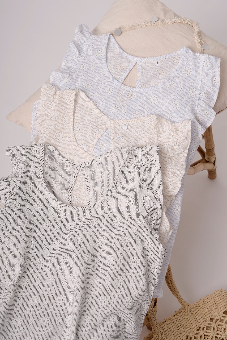 MUSCULOSA GOTA POPLIN CON BRODERIE flor mediana con circulo