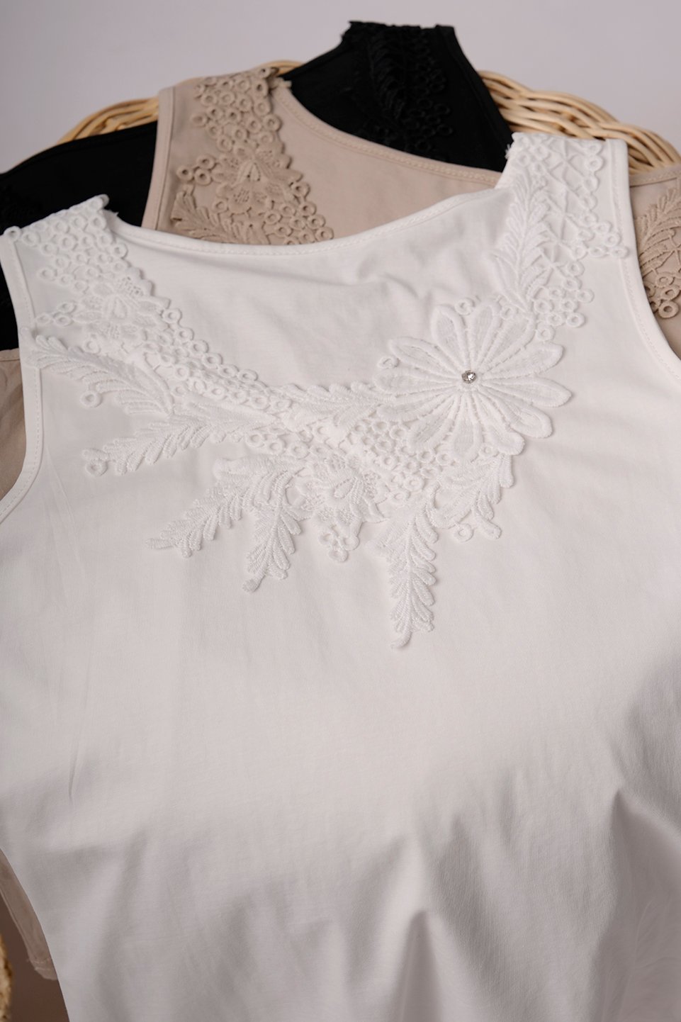 MUSCULOSA PUNTILLA BRODERIE CUELLO TACHA