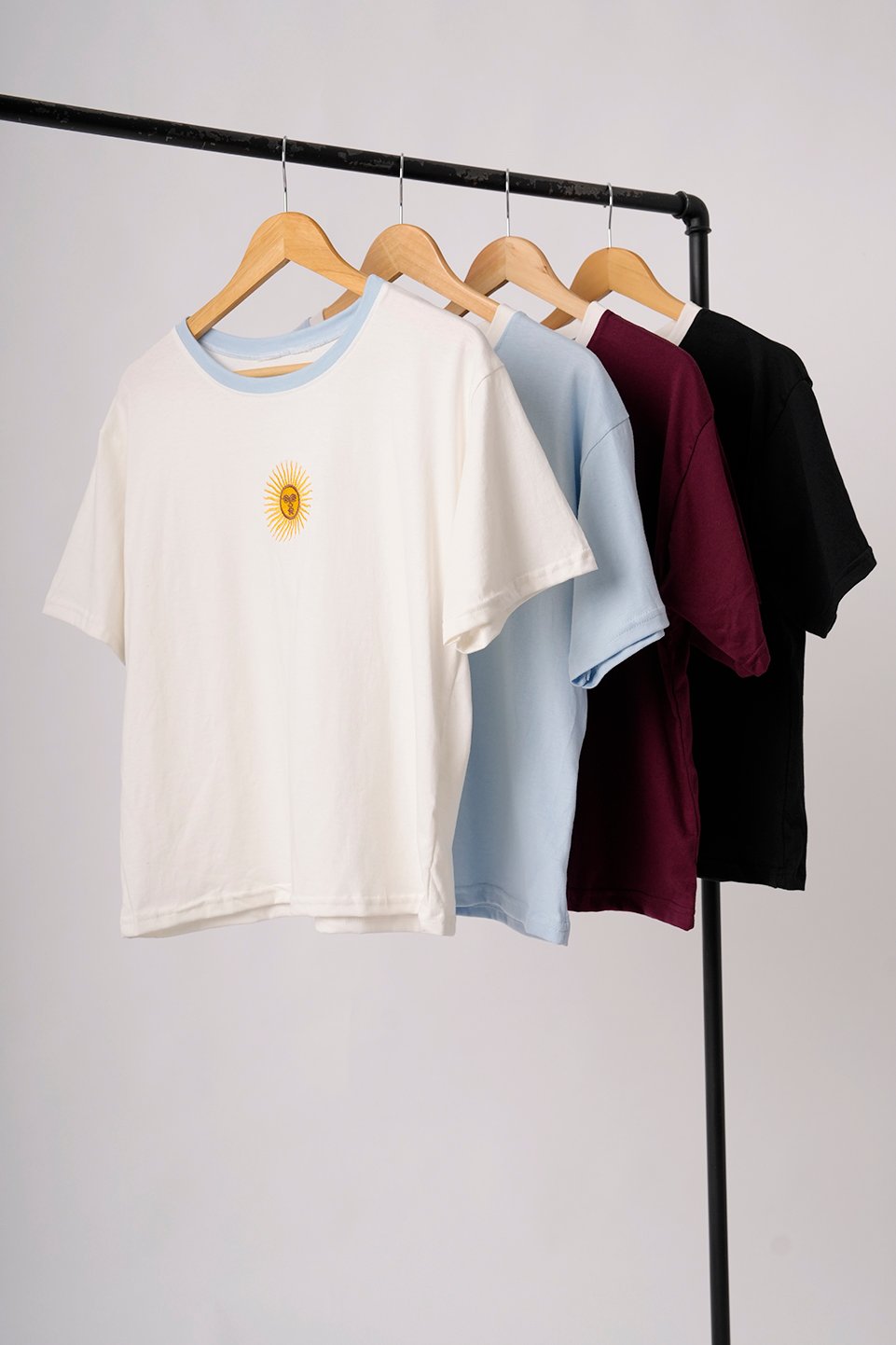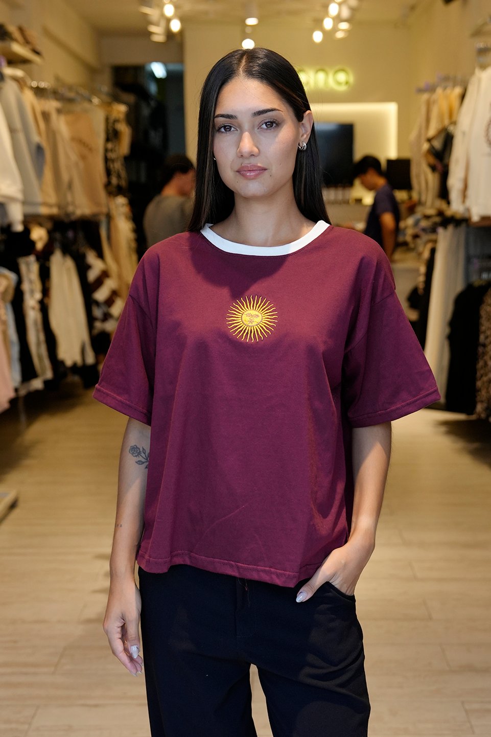 REMERA ALGODON JERSEY 24/1 SOL DE MAYO EN EL MEDIO BORDADO 2-3-4