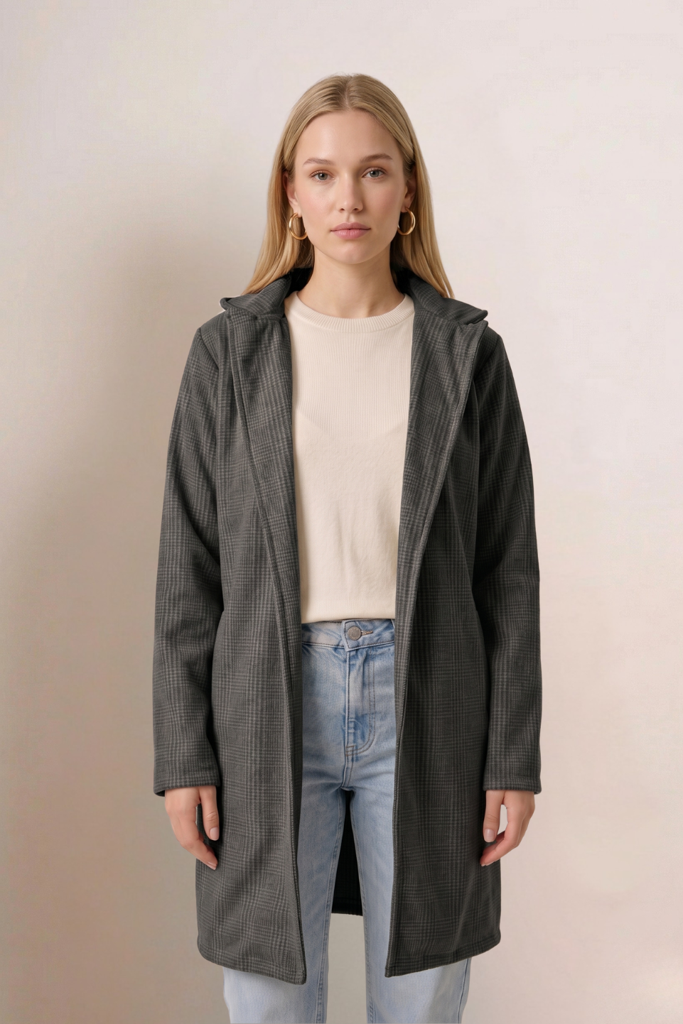 SACO LARGO PAÑO ESTAMPADO CUADRILLE